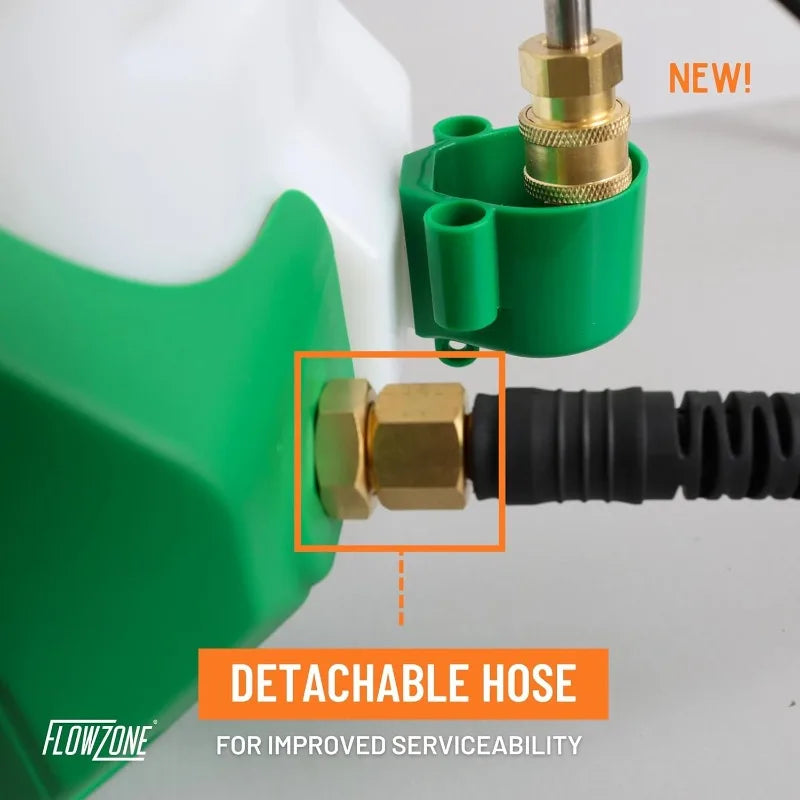 CONVENIENT DESIGN - This electric garden sprayer features a padded ComfortStraps backpack system for comfort and breathability during prolonged use. A threaded brass connector allows you to detach the hose without removing the front cover plate.