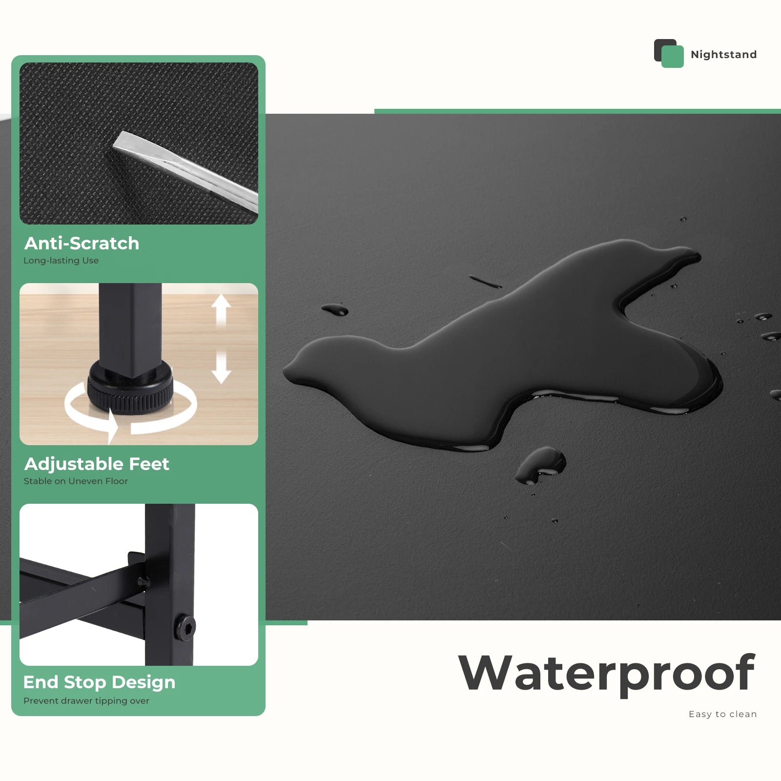 • 【Studry & Durable】The side tables is equipped with 1.5mm thickened steel frame, 15mm MDF board and waterproof wooden board for a long-lasting structure that is not easily deformed. 4 adjustable plastic feet protect floors from scratches. Easy-pull drawers glide and close smoothly.