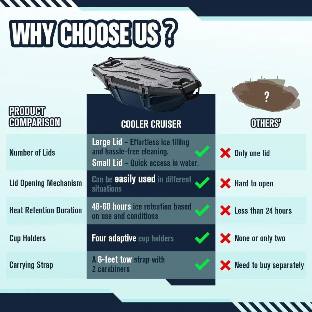 Included Components: 32QT Cruiser Cooler Floating Cooler 6 ft Tow Strap with Car