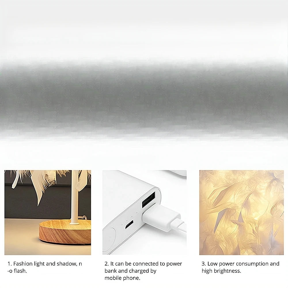 LED Warm Small Table Lamp, Romantic Creative Feather, Girls Bedroom Bedside Table