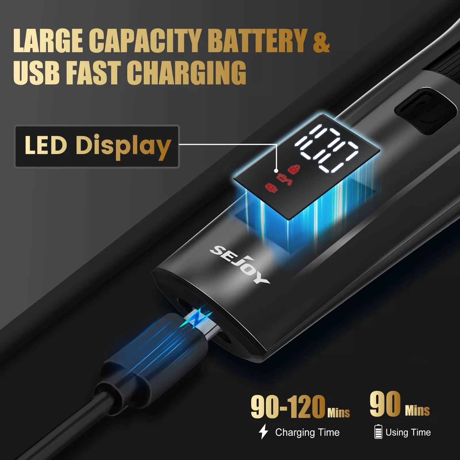 The body trimmer can be charged through the SMART CHARGING DOCK or charged with USB cable separately. The battery indicator on the case can check the remaining battery status at a glance