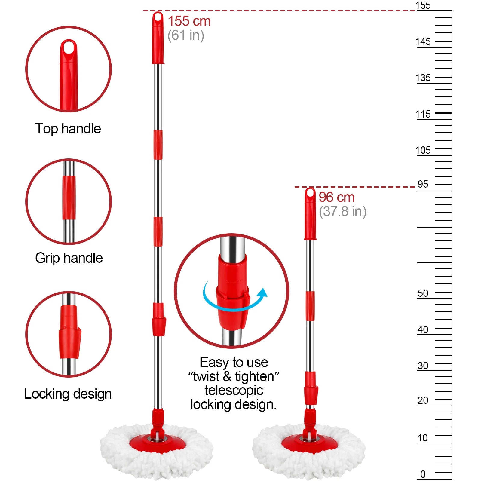 Spin Mop Bucket System W/Wringer Set, 3 pcs Mop Heads, Extendable Pole