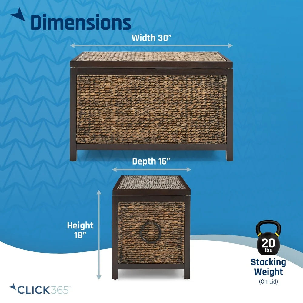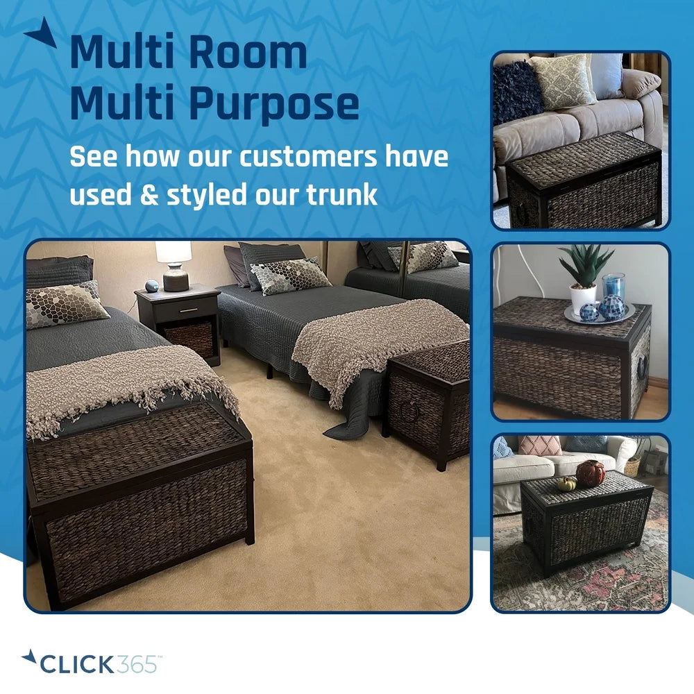 ClickDr delivers products that let you live your best life at home. We've assembled a broad range of practical and functional home furnishing solutions that provide a modern look, focusing on small-space living that will stay within your budget. Organizing and storing all your keepsakes is now more convenient with the Wilson Wicker Trunk. It's a practical storage solution that not only de-clutters your living area but also adds a rustic appeal to your home. The Wilson is a good ol' country farmhouse trunk made with a solid Acacia wood frame and handwoven in natural water hyacinth in black, brown, and gray for a beautiful, weathered look. Drative rounded handles on each side make it look even more vintage. At 30" wide and 16" deep, this wicker storage chest provides plenty of room to hold all your essentials. Place it at the foot of your bed in the bedroom as a blanket trunk, or keep it in the bathroom to store linens and towels. It's also perfect as a wicker toy box in the kid's room or living room or as a shoe basket in hallways or entryways. The flip-top lid opens and closes smoothly, and makes accessing or storing your belongings easy. A -lock hinge keeps the lid open, so you don't have to worry about it jamming your or your kiddo's fingers. Lightweight items can be placed on top for even more useful space. With the ClickDr Wilson Wicker Trunk, your household necessities are readily available but out of the way. Order today for a functional and versatile storage piece that'll add cozy warmth to your dr.
